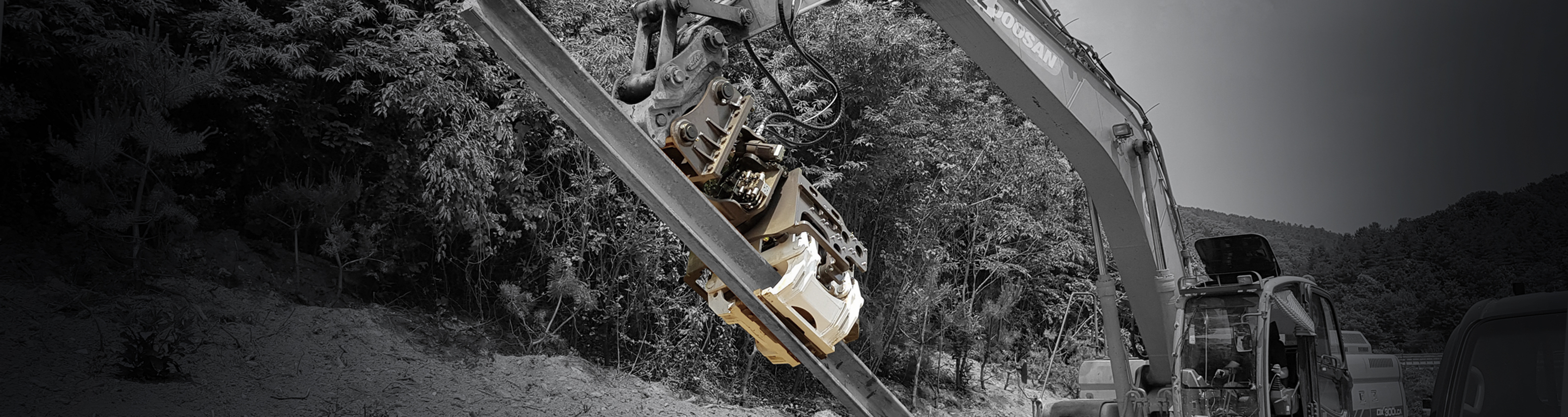 굴삭기에 장착하여 사용하는 바이브로 햄머는 토목및 건설현장, 흙막이 공사에 필요한 H-BEAM, SHEET PILE 압입, 인출에 최적화된 장비입니다.